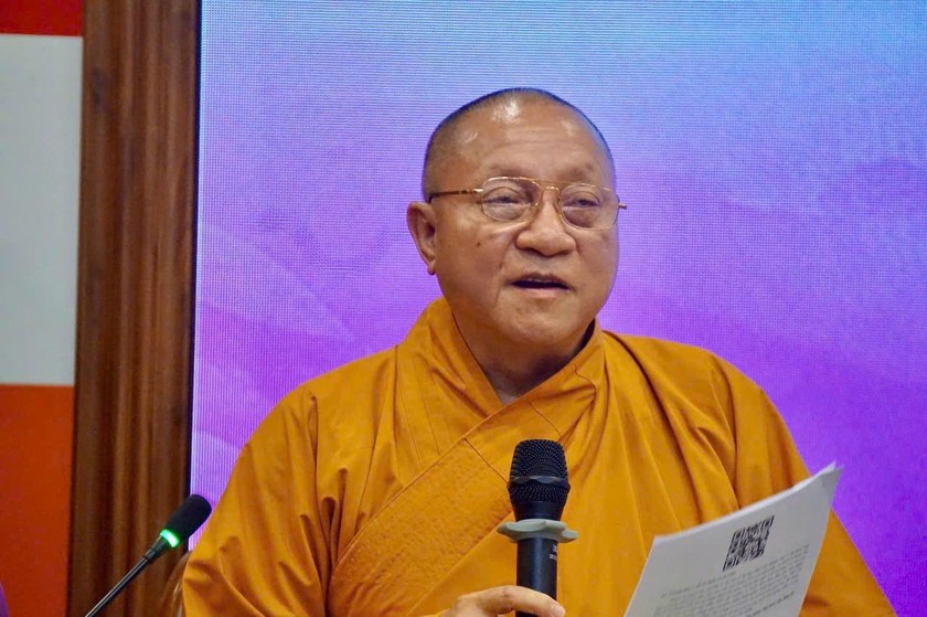 | Hòa thượng Thích Gia Quang - Phó Chủ tịch Hội đồng trị sự GHPGVN tại cuộc họp báo (ảnh T.D) |