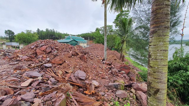 Ghi nhận tại hiện trường, “núi” đất thải cao vút và được chất đến sát mép sông Hương. Những ngày trời mưa, nước từ “núi” đất này mang theo màu đục ngầu của đất chảy xuống dòng sông Hương.